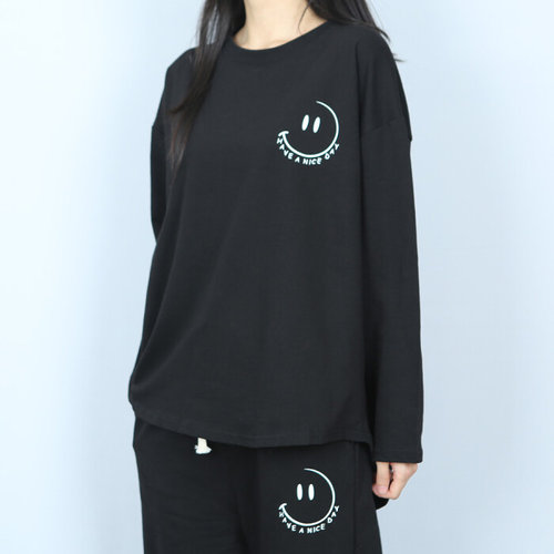 파라노말샵 / (투피스) 해피 스마일 긴팔티 와이드 팬츠 통바지 트