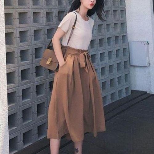 [에이치플러스몰]와이드 여자 추천 팬츠 반팔 꾸안꾸 투피스 세트 치마