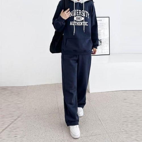 BLACK K7 여성용 배색 상하의세트 캐주얼 후드티 와이드팬츠 투피스