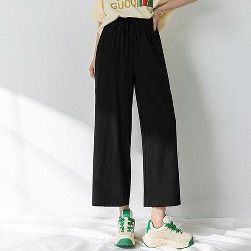 여성 하이웨이스트 캐주얼 팬츠 단색 다용도 와이드 레그 7부 길이 가을