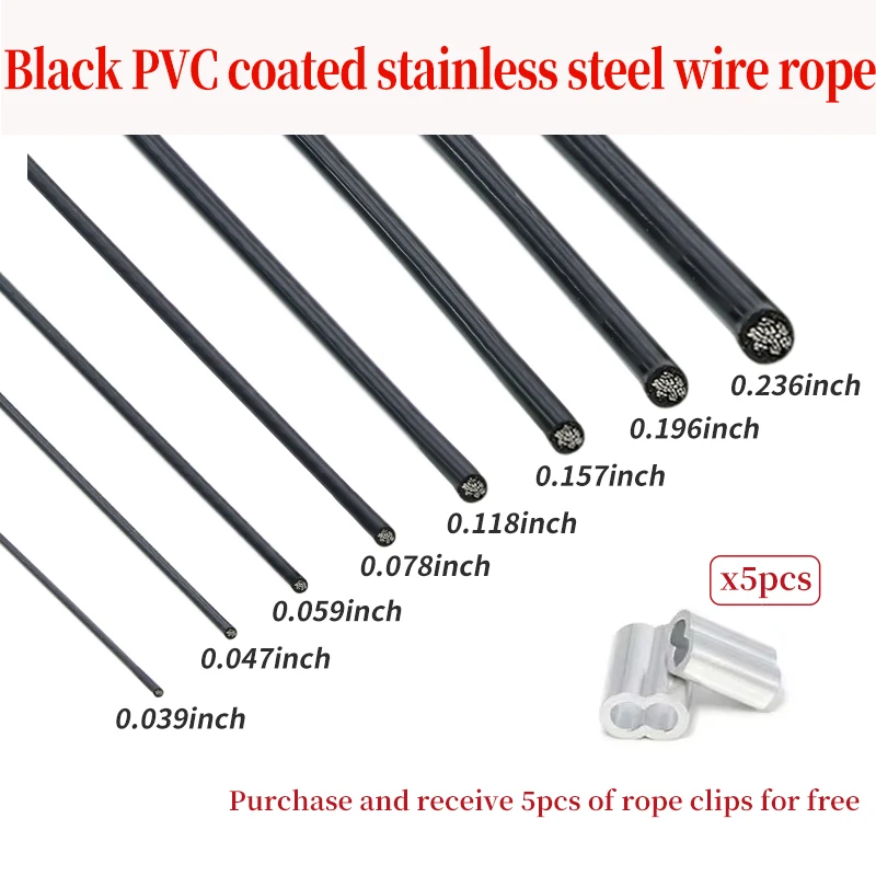 2mm 스테인레스 스틸 와이어 로프 키트 30/50M 코팅 PVC는 빨랫줄/정원/철도/캠핑/양산/울타리에 DIY로 사용할 수 있습니다.