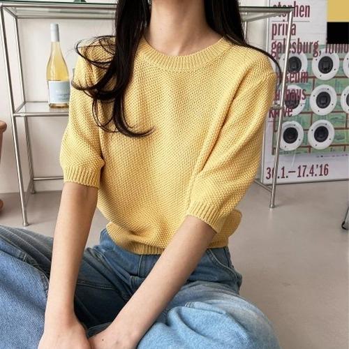 [엄지척]여성 간절기 와플 라운드 반팔니트 티셔츠_20388676_667501