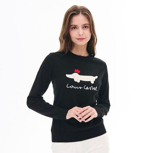 [루이까스텔]여성 시그니처 왕관 닥스훈트 자수 라운드 울 스웨터