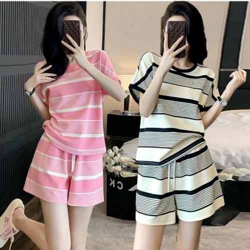 [엄지척]여성 여름 외출 홈웨어 스트라이프 반팔 반바지 세트_20389089_667501
