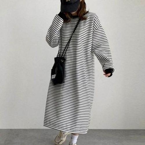 [엄지척]외출 여성 캐주얼 패션 기모 안감 스트라이프 원피스_19803118_667501