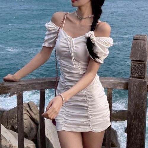 여성 바다 외출 휴양지 패션 허리 라인 민소매 원피스 (HSJ-WFAADDF)