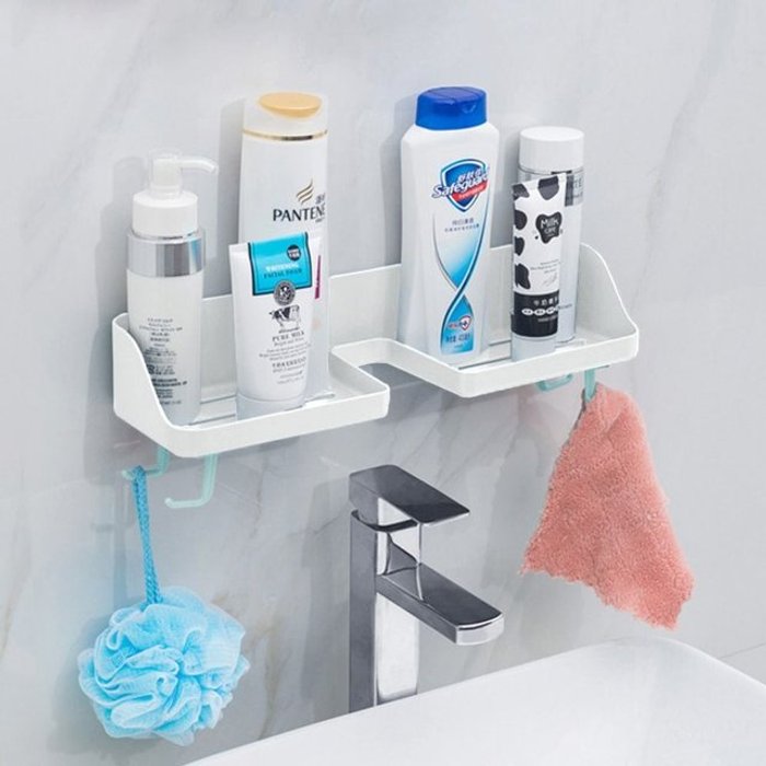 코너 수납 욕실 정리함 무타공 벽걸이 욕실 수납 선반 샤워 랙 정리함 접착식 배수 바구니 포함