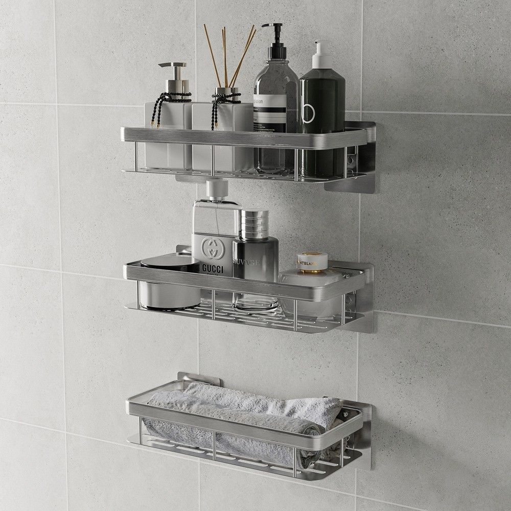 샤워 캐디 실내 욕실용 선반 3팩 비누 홀더가 있는 방청 접착식 정리함 드릴링 세면대 없음 욕조