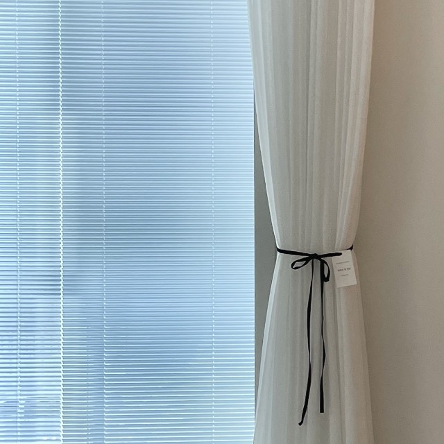 LUCKHEE 리본 우드블라인드 블랙N화이트 라인 나무 댕기 원목 커튼 암막 거실창 창문 브라인드