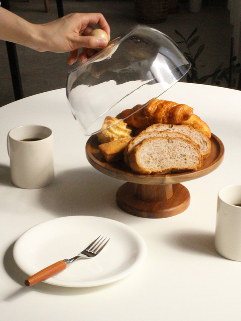 [해외] 북유럽 우드 케이크 스탠드 트레이 유리돔 빵 디저트스탠드 3colors 3size