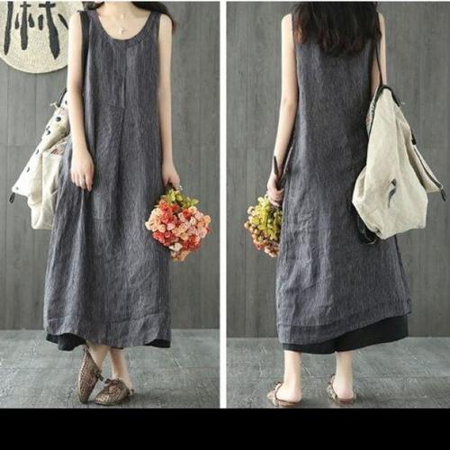 해피유통 여성 여름 루즈핏 캐주얼 롱 캐주얼 민소매 솔리드 원피스jh lmy