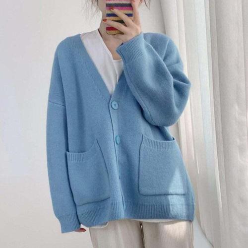 [셀럽하우스]7컬러 WQQC9425 브이넥가디건 오버핏 벌룬 캐시미어가디건 카디