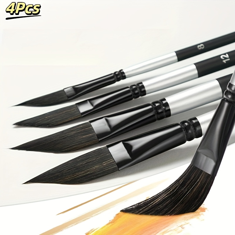 TEMU 전문가용 수채화 브러쉬 4종 세트, 미술용 등급 브러쉬 세트, 디테일용 브러쉬, 칼날형, 고품질 나일론 강모, 자작나무 수지 쥐꼬리형 손잡이, 인물화, 식물화, 서예용, 수채화, 구아쉬, 수묵화 기법용