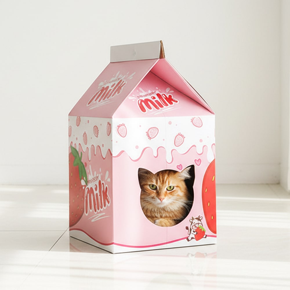 TEMU 인터랙티브 고양이 퍼즐 박스 - 스크래칭 포스트 & 발자국 컷아웃, 내구성 있는 가죽 재질, 실내용 고양이 장난감, 배터리 불필요, 녹색 & 갈색 디자인, 긁힘 방지 소재