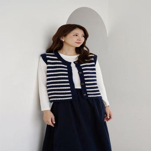 [우일인견]여성 스트라이프 단가라 니트 베스트