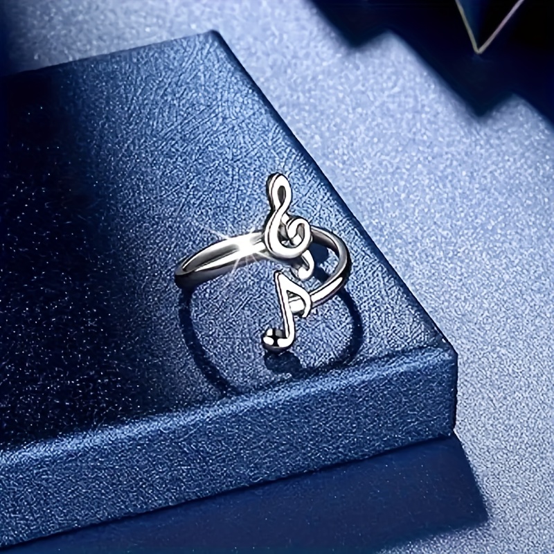 TEMU 여성용 조절 가능한 음표 반지 - 트레블 클레프 & 바스 클레프 디자인의 빈티지 엘레강스 음악 기호 주얼리, 구리 합금 사계절 데일리 & 파티 액세서리