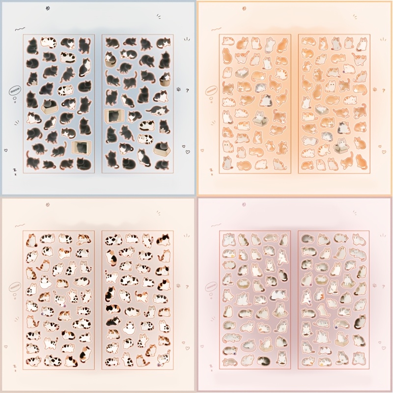TEMU 고양이 패턴 플러시 벨벳 와시 스티커 4pcs 세트 - 노트북, 다이어리, 오피스 컵, 문구함, 데스크탑 장식용