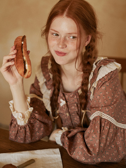 [울랄라파자마] 앤의 솔방울 긴팔 원피스 브라운 (30수)