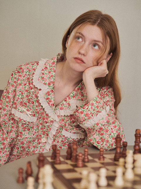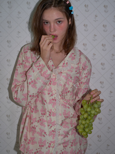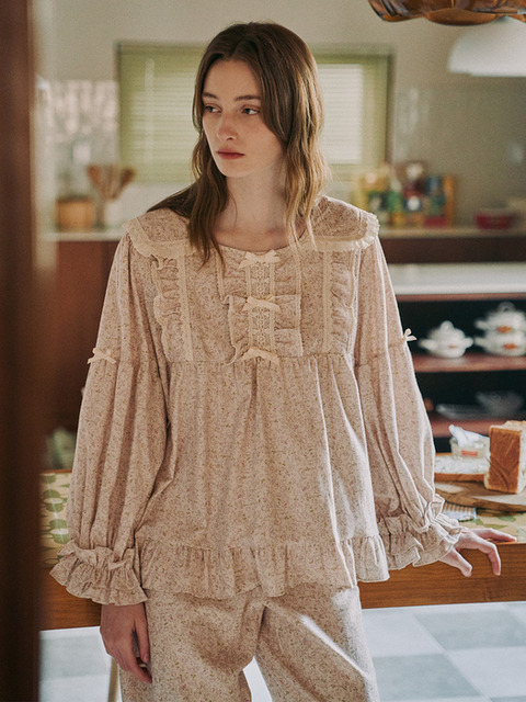 [울랄라파자마] 코렐리아 긴팔 투피스 크림로즈 (21수)