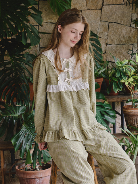 [울랄라파자마] 도리안 긴팔 투피스 모스그린 (21수)