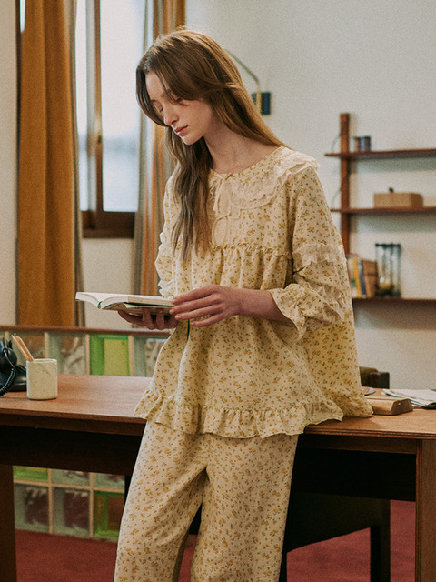 [울랄라파자마] 코렐리아 긴팔 여성페어 크림로즈 (21수)
