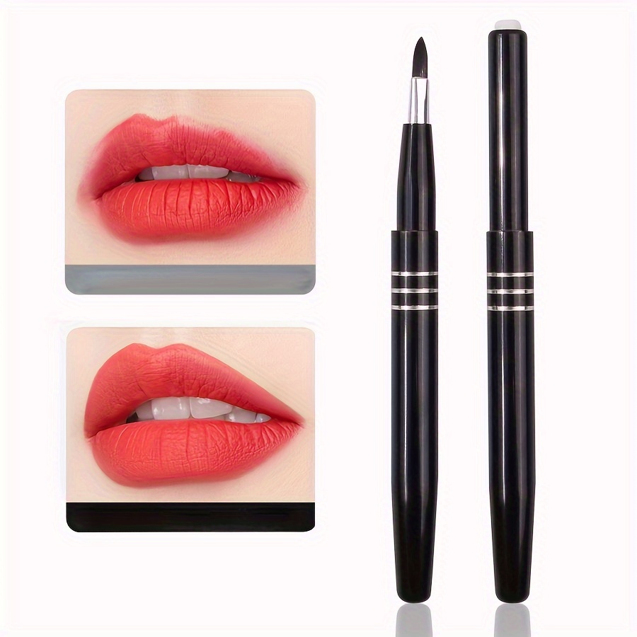 TEMU 2개 팩 접이식 립 브러시 무향 나일론 브리스털 막대 정상 피부용, 휴대용 금속 막대 메이크업 립스틱 브러시 세트