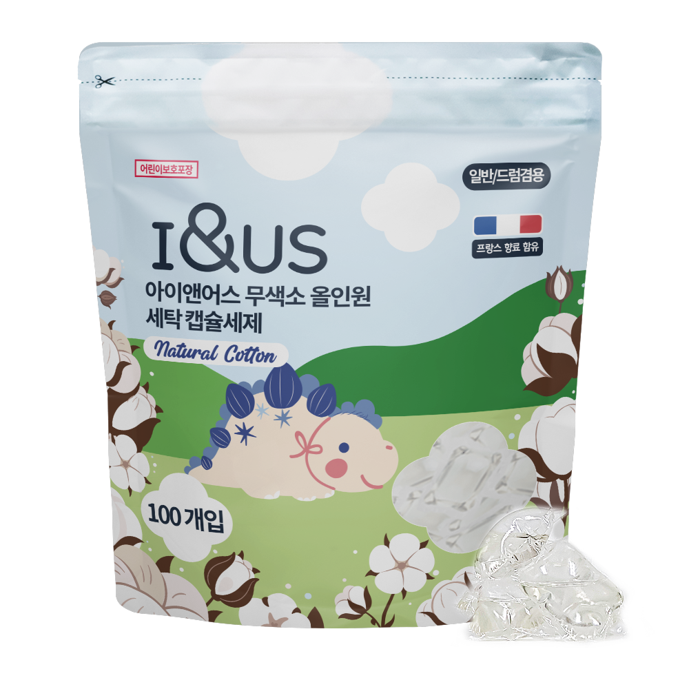 무색소 올인원 세탁 캡슐세제 100개입 1개 초고농축 향균 세탁세제 드럼 일반 겸용 코튼향