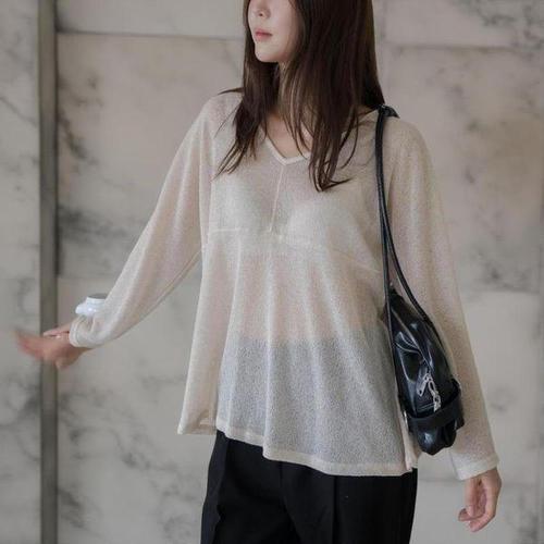 [다잇템]여성 비침 여성스러운 마원단 V넥 티셔츠