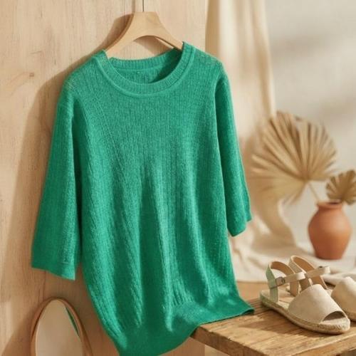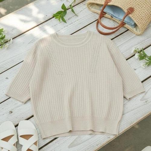 [다잇템][다잇템] 여성 라운드 일상복 마원단 티셔츠 내추럴 니트_24771843_588872