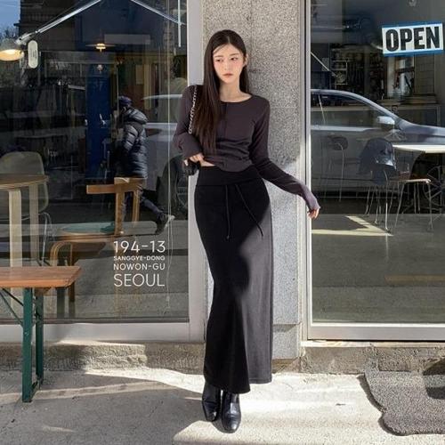[다잇템][다잇템] 여성 슬림 마원단 넓은 면원단 롱스커트_24771874_588872