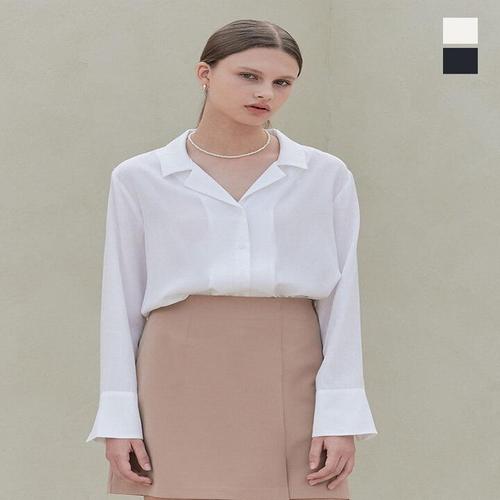[원더플레이스][더블유스탠다드(W STANDARD)] 지적인 오픈 카라 셔츠 블라우스