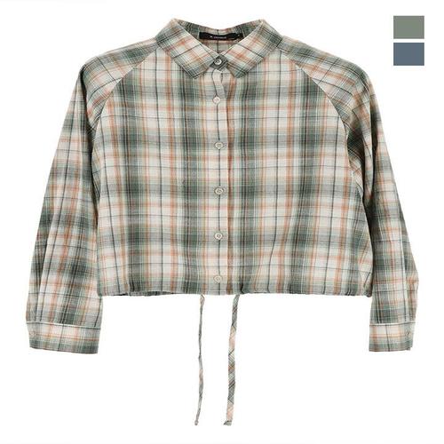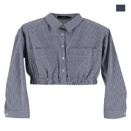 [원더플레이스][더블유스탠다드(W STANDARD)] 코튼100 밑단 밴딩 우먼 크롭 체크 셔츠