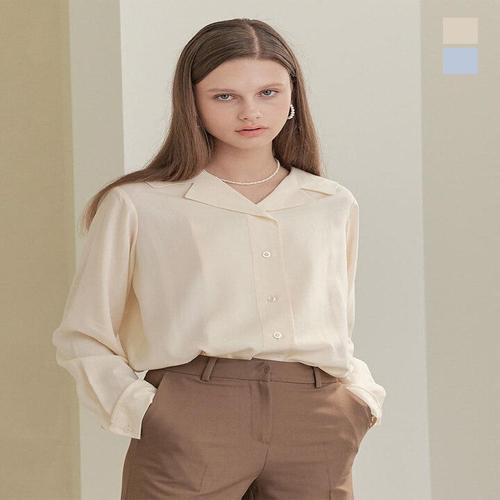 [원더플레이스][더블유스탠다드(W STANDARD)] 여성스러운 폴리 베이직 오픈 카라 셔츠