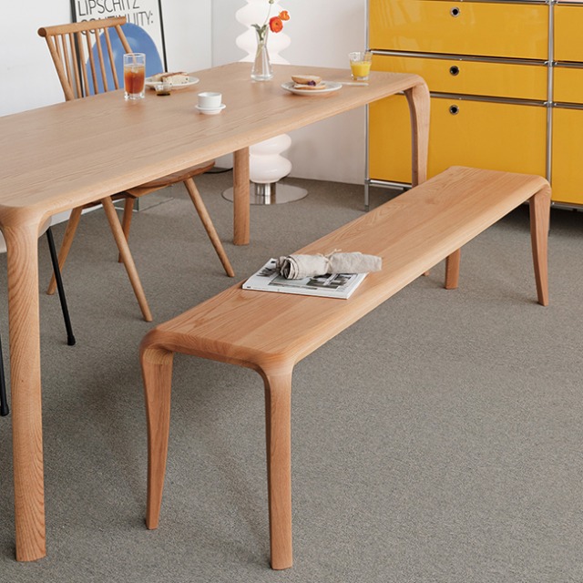 [라로퍼니처]그라나다 고무나무 원목 2인 인테리어 벤치 식탁 의자