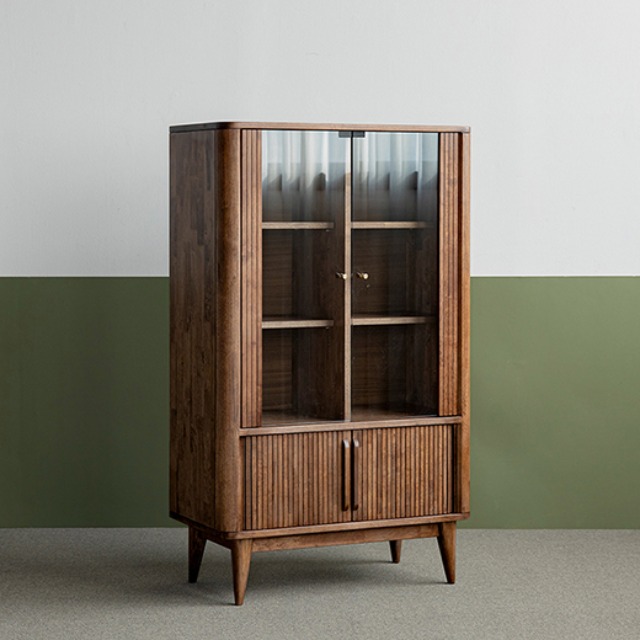 명품 고무나무 D타입 원목 장식장 유리 진열장 장식장