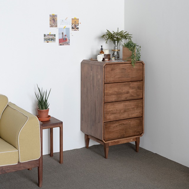 폴리 키크고 속깊은 고무나무원목 5단서랍장