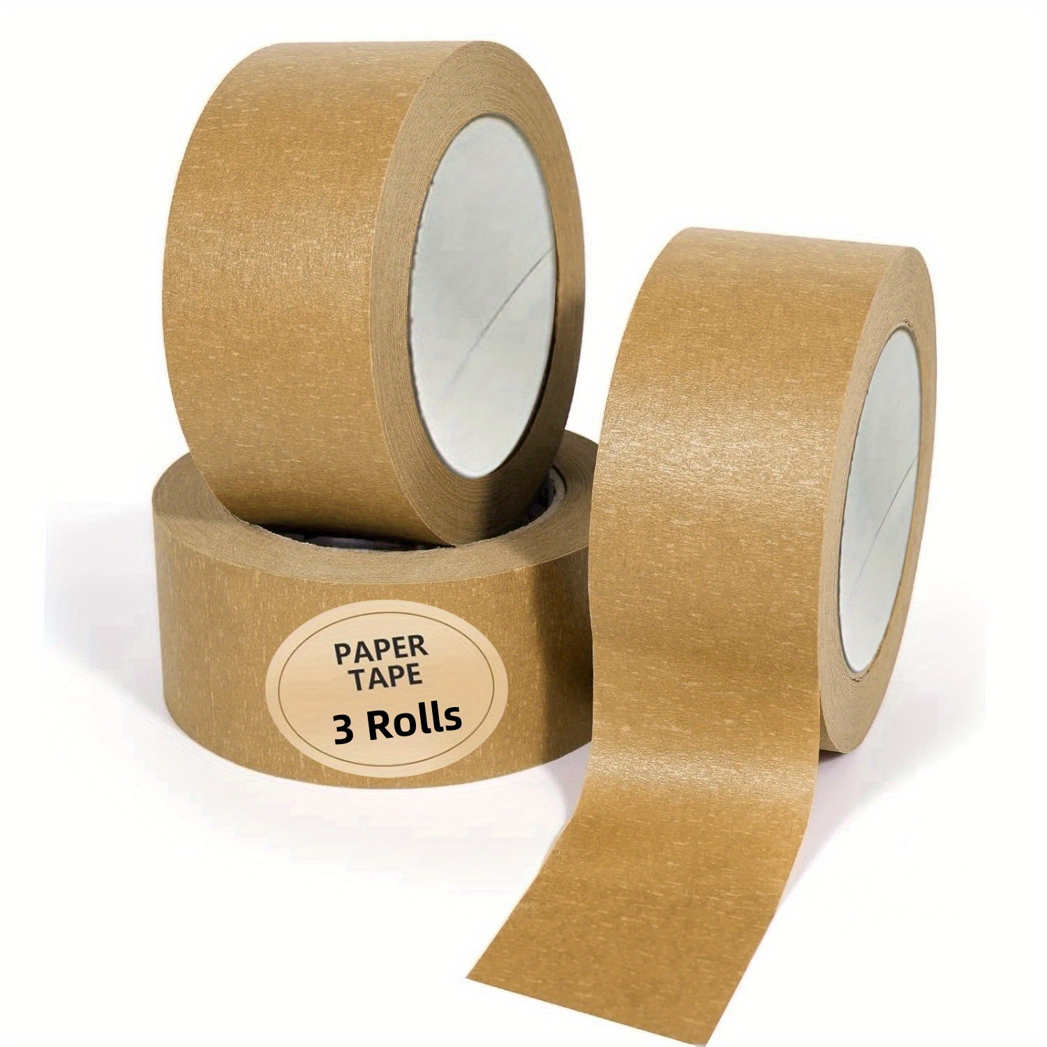 TEMU 2인치 고강도 크래프트 종이 포장 테이프 - 생분해성, 방수 코팅 브라운 강력 접착 마스킹 및 고품질 포장용, 천연 느낌의 마스킹 테이프
