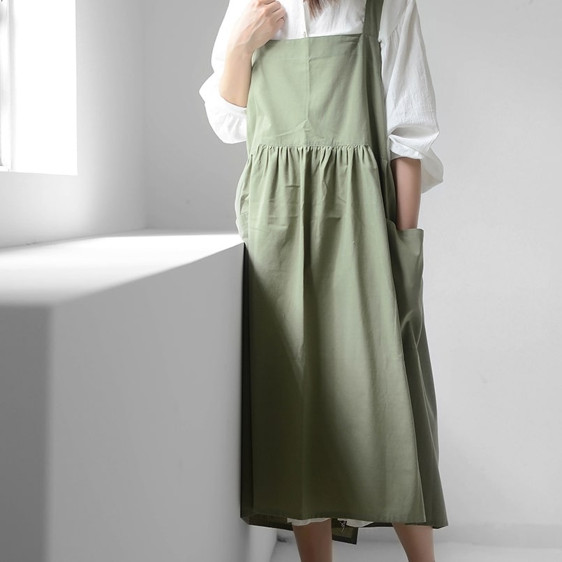 예쁜 시원한 여름앞치마 주방 원피스 순면 어린이집교사 방수 앞치마