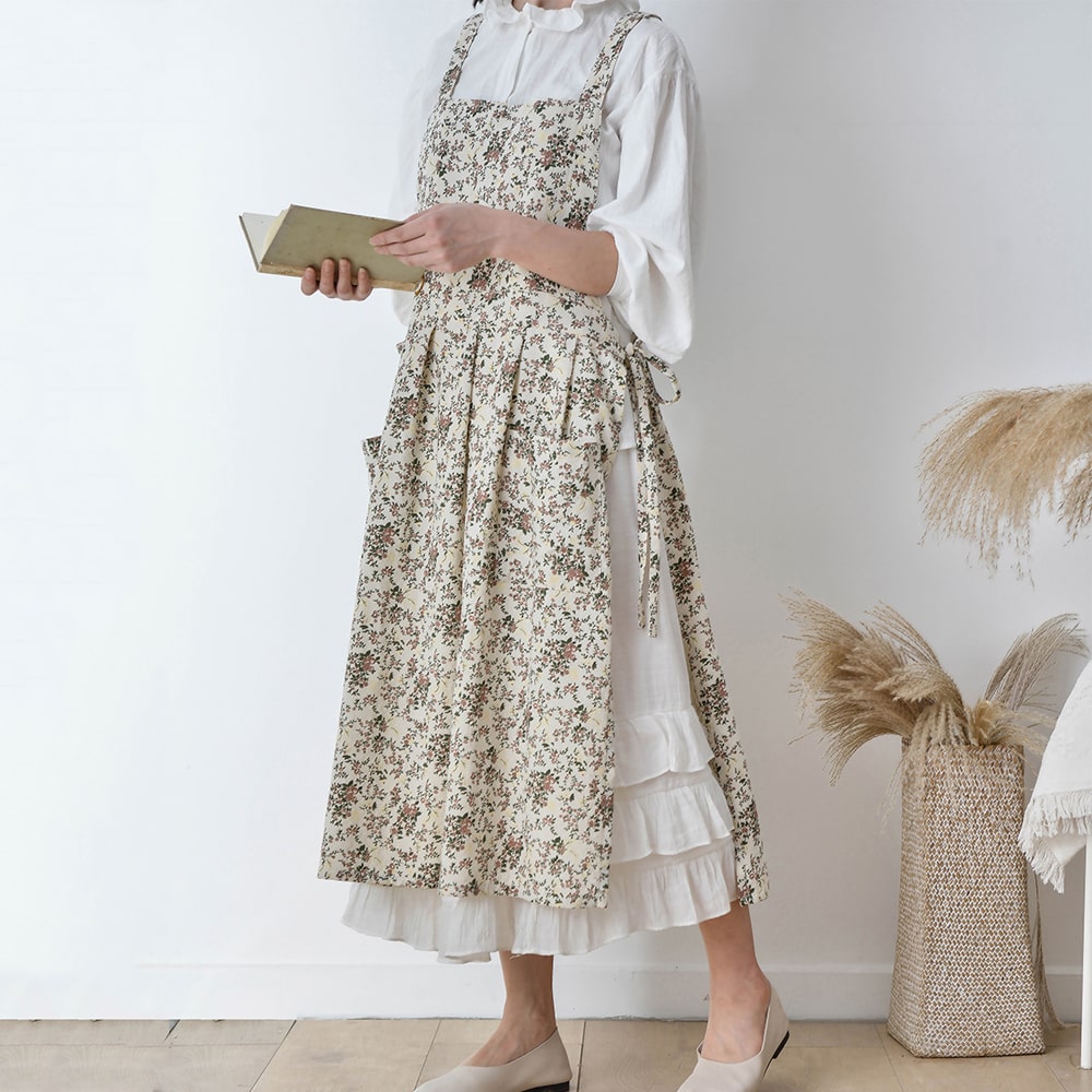 브람스 방수앞치마 공방 주방 러블리 플라워 원피스형 (2color)
