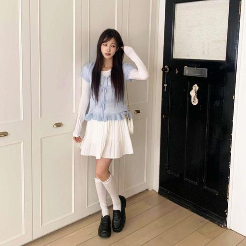 [다잇템]여자 프릴 리본 반소매 SS 코디 니트