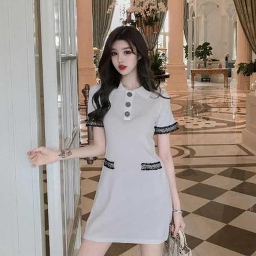 여자 결혼식 패션 하객룩 코디 카라 배색 반팔 원피스 (KYR-WFGC8G6)