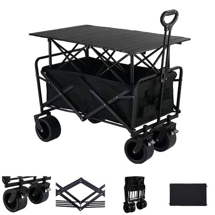 캠핑 폴딩 카트 접이식 웨건 특대 98x55x50cm 라지 8인치 바퀴 접이식 테이블 블랙 E133