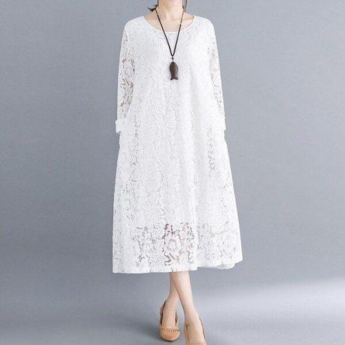 [모노무드]LMO 케익 데일리 오버핏 롱슬리브 롱드레스 오버사이즈 레이스소재 웨딩롱드레스업