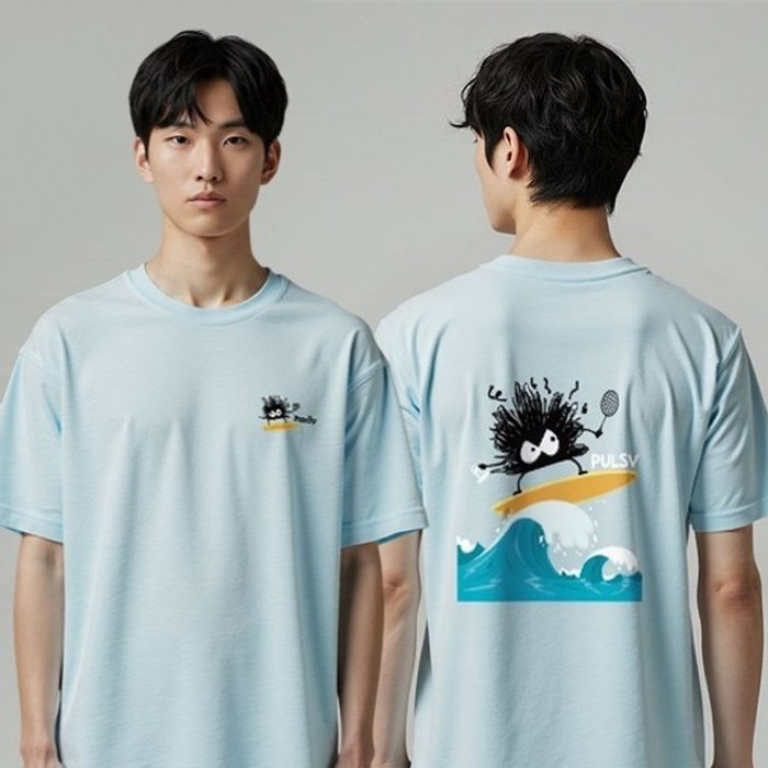 펄스비 펄스비 남성 여성 반팔 티셔츠 오버핏 더스트 웨이브 스카이