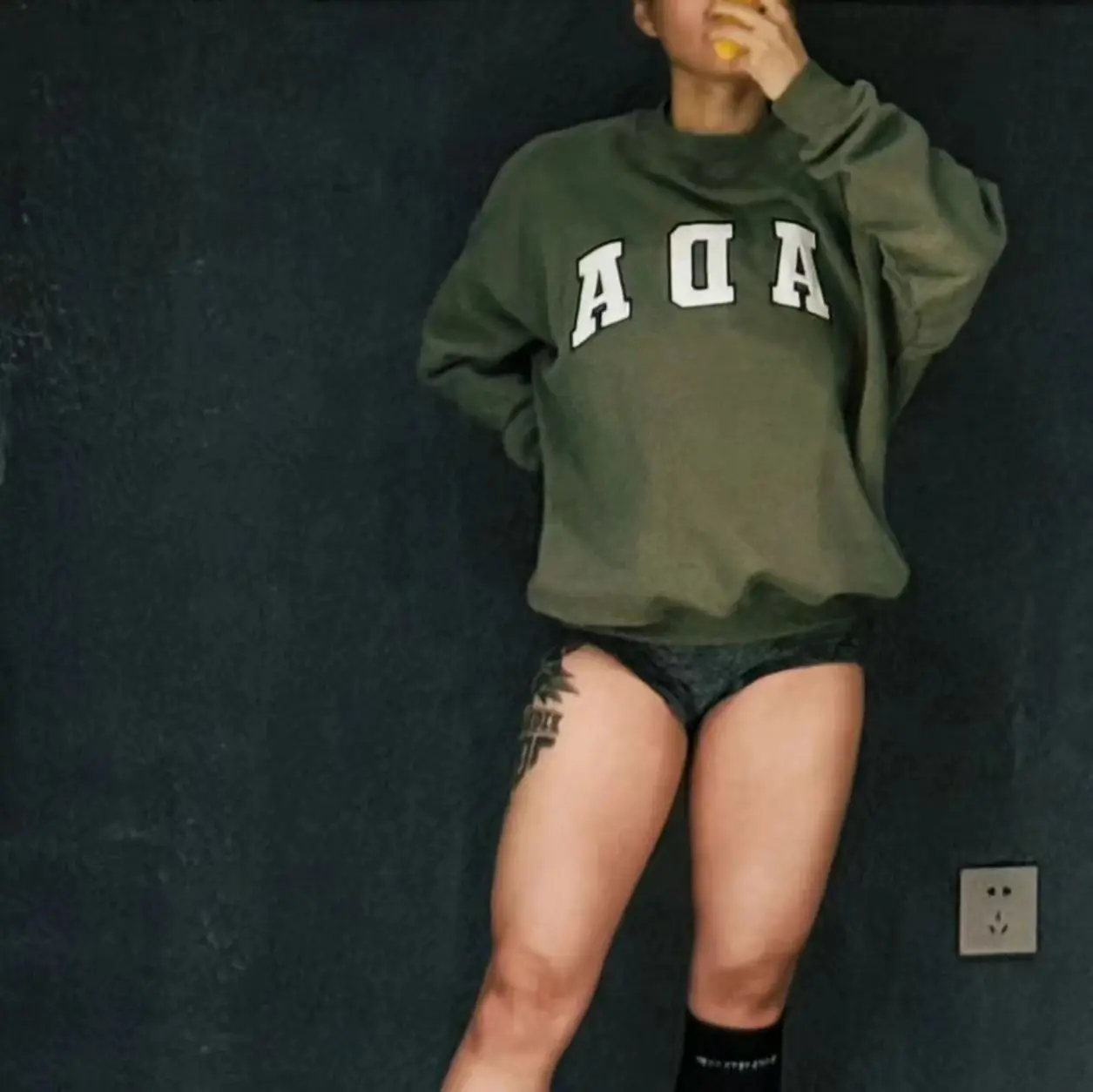 루즈 라운드 넥 스웨트셔츠 여성 스트리트 스타일 올리브 그린 탑 ADANOLA 스포티 트렌디 브랜드 편안한 긴팔 코튼