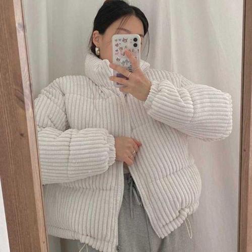 [셀러허브_여성트랜드패션]여성 방한 스트링 웰론 코듀로이 패딩 하이넥 숏 겨울