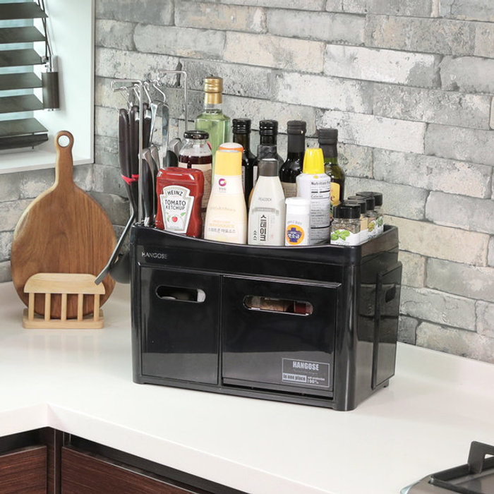 위즈홈 [위즈홈] 한고세 주방선반 칼꽂이 양념통 정리함 /블랙