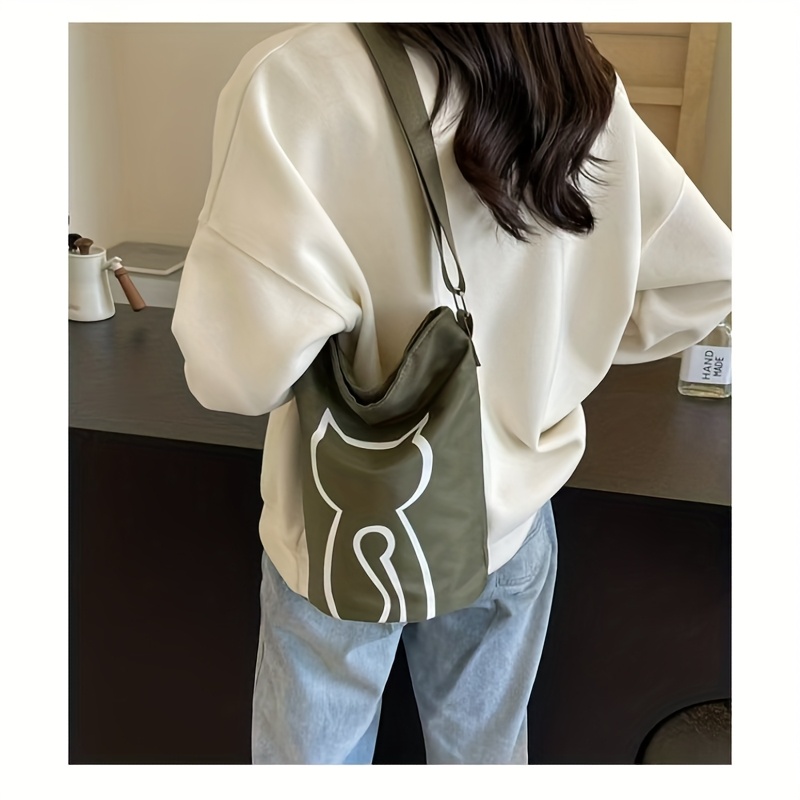 TEMU 대용량 프린트 토트백 - 다용도 여성 숄더 & 핸드백, 가벼운 나일론, 지퍼 클로저, 출퇴근, 여행, 데일리 패션에 완벽 - 그녀를 위한 이상적인 선물|크로스백|토트백
