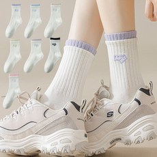 7개1세트 뷰티 여성 마카롱 포인트 데일리 중목 양말 7켤레