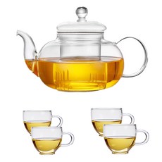 가정용 내열유리 티포트+찻잔90ml 4개, 1세트, 투명색, 600ml